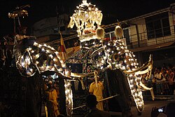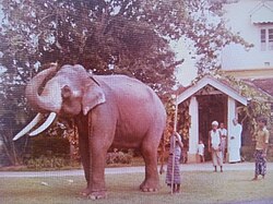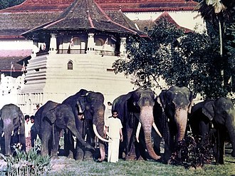 Raja (Sinhala: රාජා ඇතා – Raja Atha) (also known as Maligawa Raja, c. 1913 – 16 July 1988) was a Sri Lankan tusker elephant belonging to the Sri Dalada Maligawa temple in Kandy. Raja participated at the annual Esala procession in Kandy for around 50 years and was the sacred casket bearer of the final Randoli perehera for 37 years.[1] He was one of the most celebrated elephants in Asia during his lifetime, and was world famous for his noble behavior.[2] On 20 August 1986 former Sri Lankan President J. R. Jayewardene declared Raja as a national treasure, in recognition of his valuable services to the religion and culture of Sri Lanka.[3]
