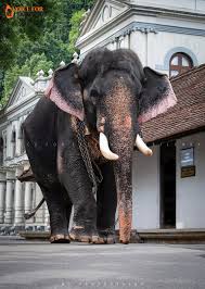 This tusker was separated from its herd of tuskers in an active war zone in the time of war and subsequently rescued by the Singha Regiment of Sri Lankan Army and donated to the sacred Temple of Tooth in 1994.This particular tusker currently has the utmost privilege of carrying the sacred Tooth Relic